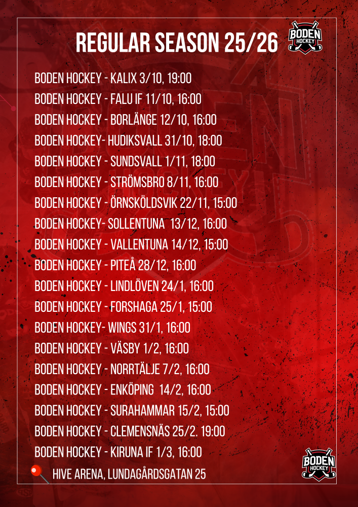 Visit Boden Hockey's website for more information about the upcoming games here.